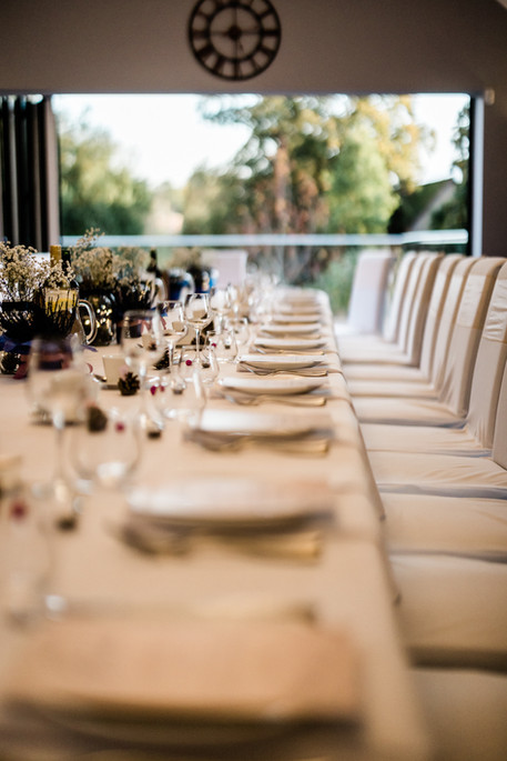 The reception called for one long, intimate table that was lined with small jars of Baby’s Breath flowers with a blue bow to complement Ekke’s suit. They sat in the River Room, which lead out to a stunning deck that overlooked the river.